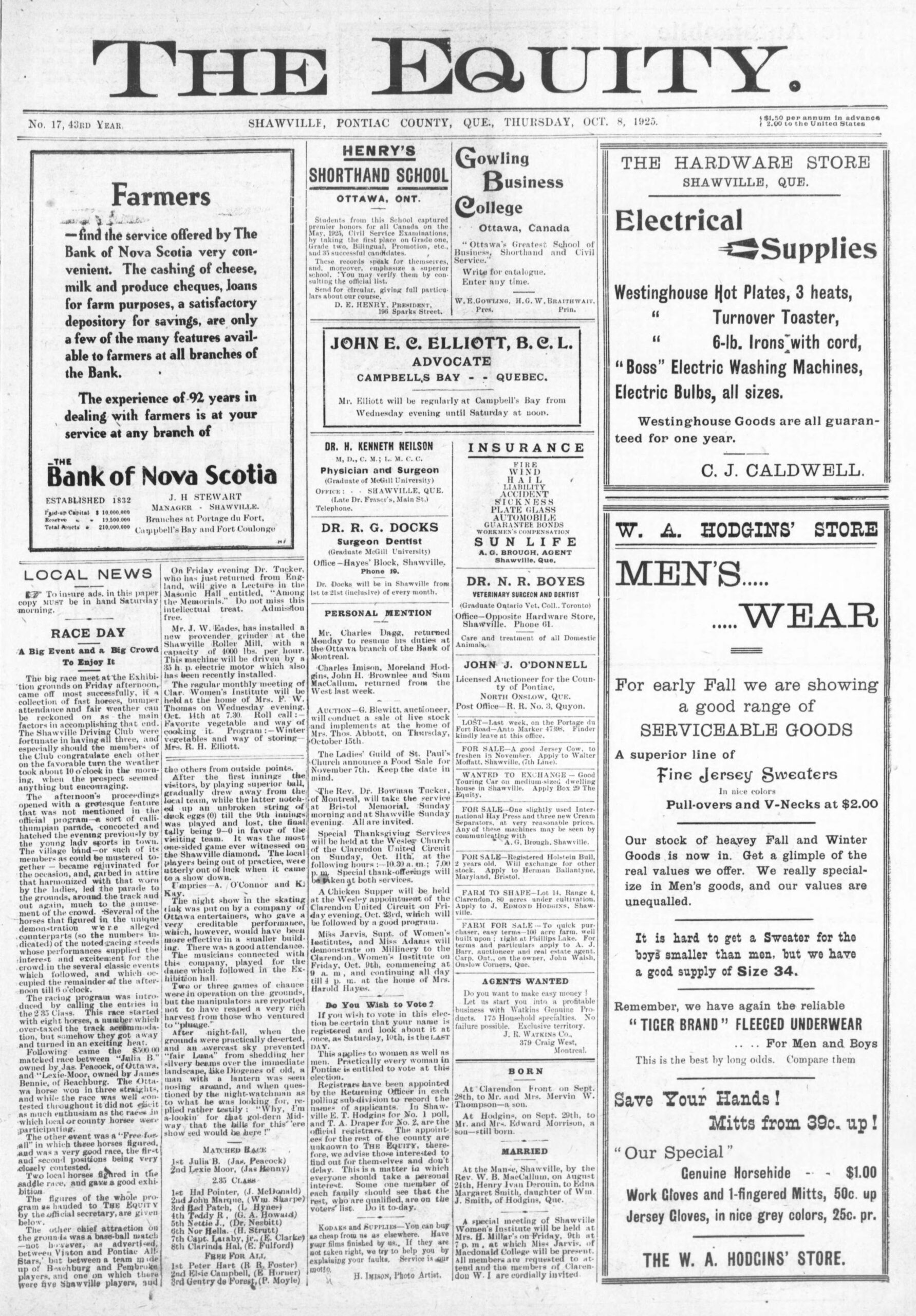 Local news: A number of counterfeit ten dollar bills of the Molson’s Bank, are in circulation. Look out for them.