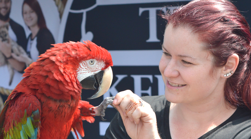 All proceeds raised through the weekend will be added to a fund that will afford Campbell’s Bay its own splashpad, set to fill the location of the old pool next to the baseball diamond. Pictured, Janie Cyr, one half of the animal education duo, The Keepers, receives a high-five from their parrot.
