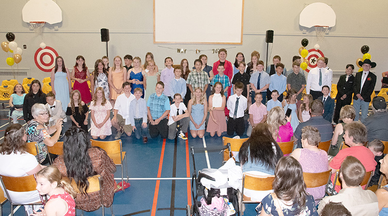 The class of approximately three dozen Grade 6 students entered the gym to the familiar Pomp and Circumstance graduation tune and took their seats at the front of the room.