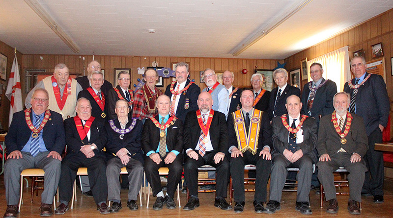 On May 4, The Royal Eniskillen Loyal Orange Lodge in Shawville held its yearly jurisdiction meeting at the local hall to discuss activities from the past year. Back row, from left: Allison Corrigan, Doug Nixon, Eric Robinson, Rufus Jamieson, Jack Knox, Mark Alexander, Rev. David Lajeunesse, Ross Mitchell, Gerald Mielke, Bev Cluff, Lee Stanley and Cliff Henderson. Front row, from left: Graydon Lowery, Everett Arthurs, George Jackson, James Allan, Jim Pyke, Russell Staye, Ken Hall and Rev. Ross Davidson.