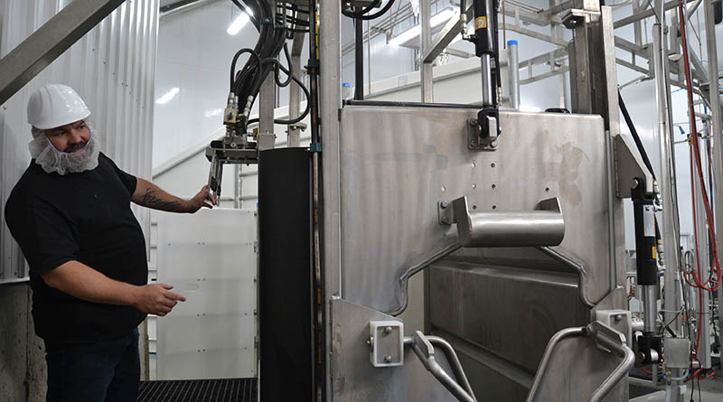 “I guide them in, receive them and tag them,” he said, and abattoir operations manager Eric Chartrand, who is leading the tour of the facility, noted that every animal is monitored closely the entire way through the process. A veterinarian and an inspector from MAPAQ are on-site any time an animal is killed.