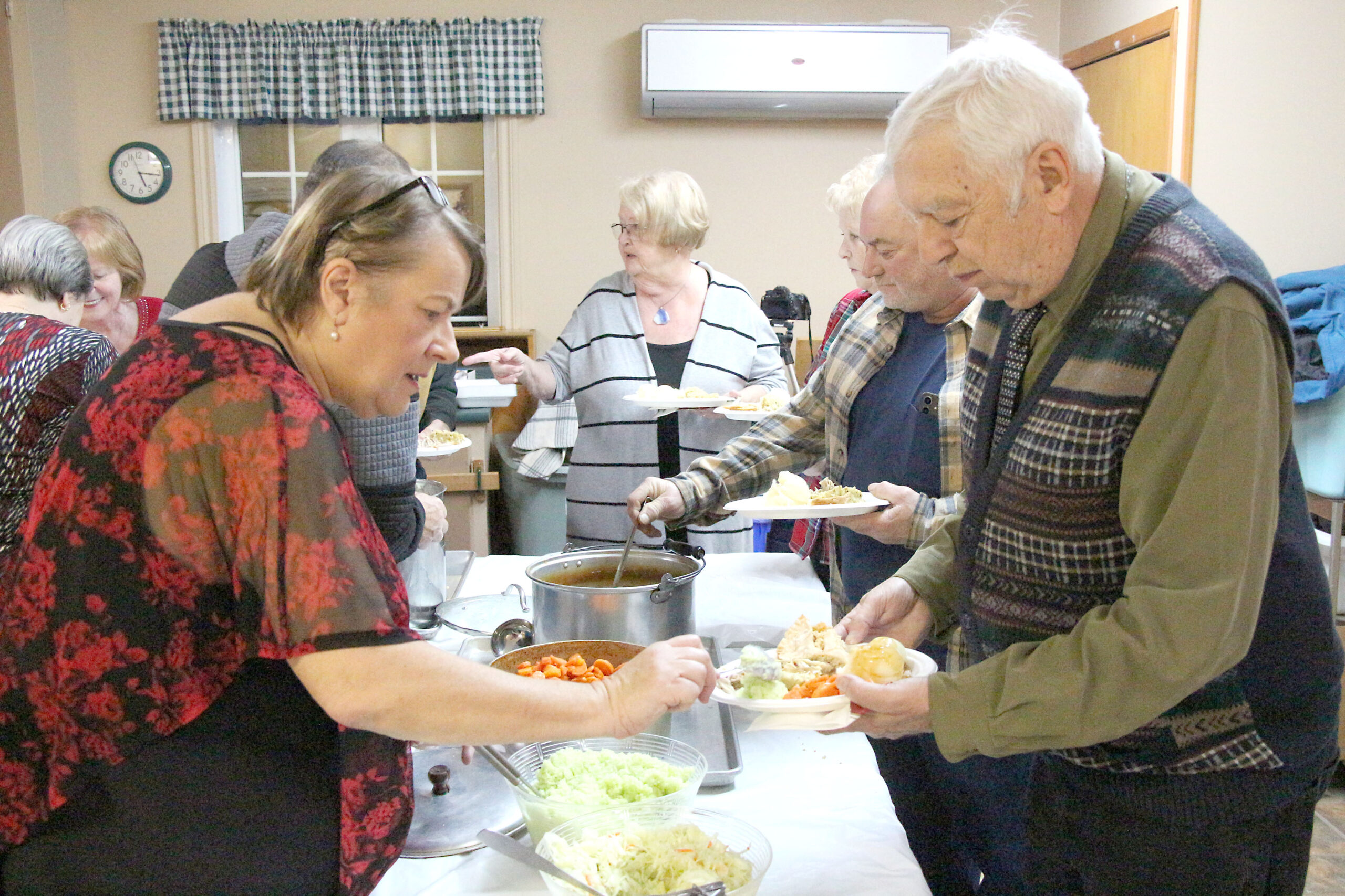Barbara Greer (left) was one of the busy volunteers serving up a holiday dinner at Fort-Coulonge’s Golden Age Club on Saturday night.