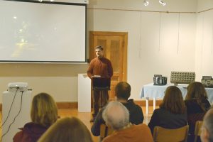 Kerr said that the stories written for the evening were all inspired by an exhibition by local artists Glen Hartle and Valerie Bridgeman entitled “Layers of Legacy” that that had been on display at the Stone School in August.