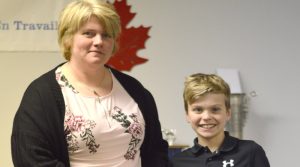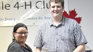 From left: Shawville 4-H Club Overall Leader Tyler McCann presents Peneloppe Lamontagne with the Most Improved Member award.