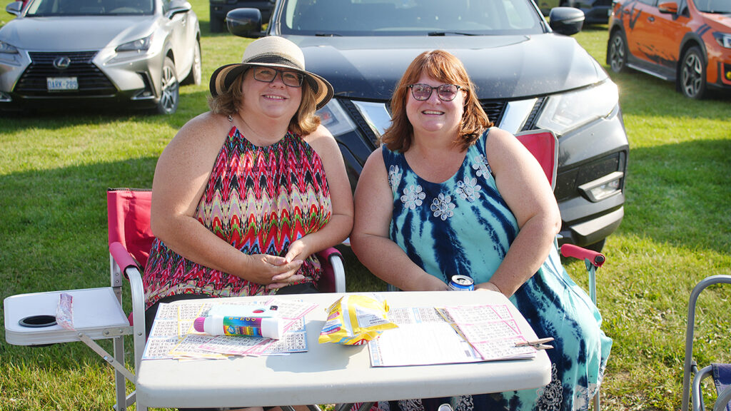 Jo-Anne Brownlee and Jennifer Davies were set up, like many others, with a table and chairs in front of the cars. They make frequent trips to the Carp bingo events, and even have bingo bags filled with some snacks, dabbers, and clothes pins to keep pages from blowing away in the breeze.