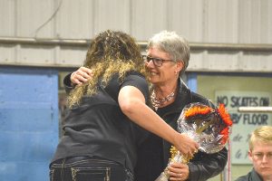 To cap off the opening night, Directors Elwyn Lang, Eason Russell and Mavis Hanna received special pins to recognize 25 years or more on the fair board. Lang’s widow Elaine was given a pin, as well as an award for dedicated service, on his behalf.