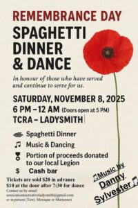 Remembrance Day Spaghetti and meat ball Dinner & Dance – music by Danny Sylvester