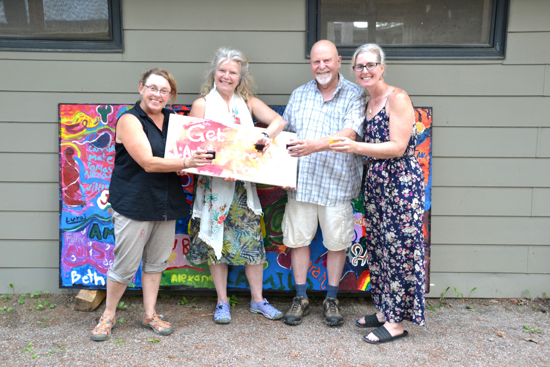 Members of local collective “Get Art”, as well as others, were on hand to display some of their wares at the home of Sarah Murray (far right) on Aug. 1. From left: Get Art founder Kate Aley, Katherine Fletcher, Michael Peterson and Murray.