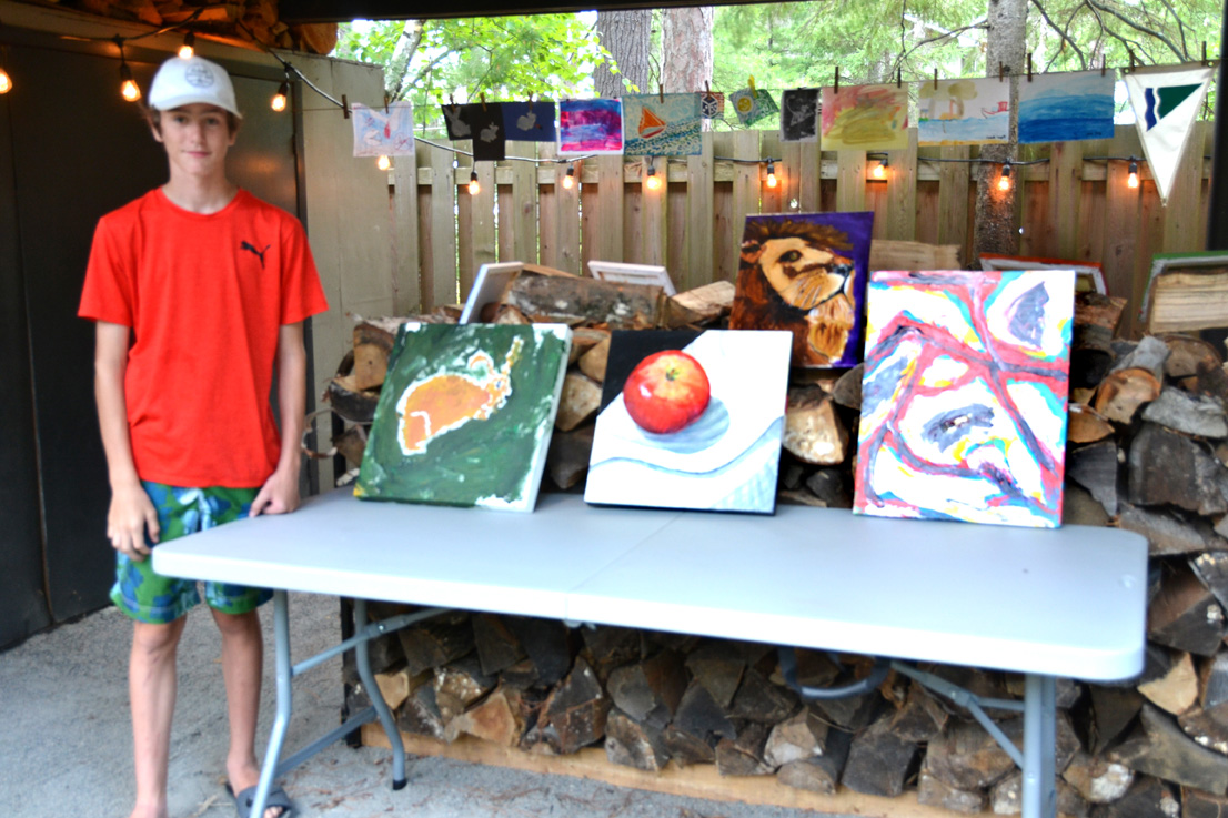 Mika Hoffer shows off some of his work at the Big Art Show on Aug. 1.