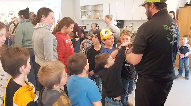 Dozens of excited children and seniors filled the Dale Thompson room at the CHSLD du Pontiac (CAP) long-term care home on Saturday to get a hands-on experience with animals courtesy of Meet the Keepers Wildlife Rescue, an organization that focuses on animal rescue and educating the public about wildlife conservation and responsible pet ownership.
