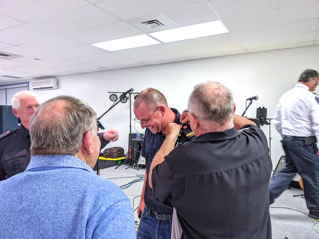 On the surface, it was a party. There was a canteen, live music, laughter, food and, most of all, people. From end to end of the centre, there were people. Deeper down, it was a subtle celebration and acknowledgment of dedication, service and community. There were epaulettes awarded to members who had received promotions. There were plaques acknowledging technical advancement in equipment and skills. And there were service awards thanking volunteers for up to 40 years of continued service to the brigade.