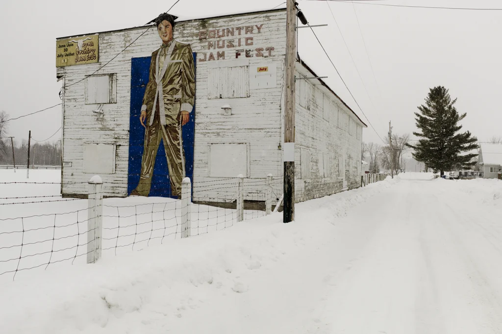 Four of the nine seem somewhat depleted, lacking in human life: a long shot of the old Elvis cut-out mounted to the side of the snow-covered Quyon fairgrounds, a red log fishing camp standing empty, the cots inside the fishing camp also empty, and a home in Fort Coulonge that offers no sign of life except a satellite dish mounted on its roof.