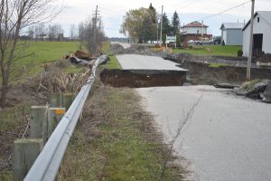 The paved section of chemin Alary was wiped out and all that remains is a 10 foot-deep chasm that stretches about nine feet in length.