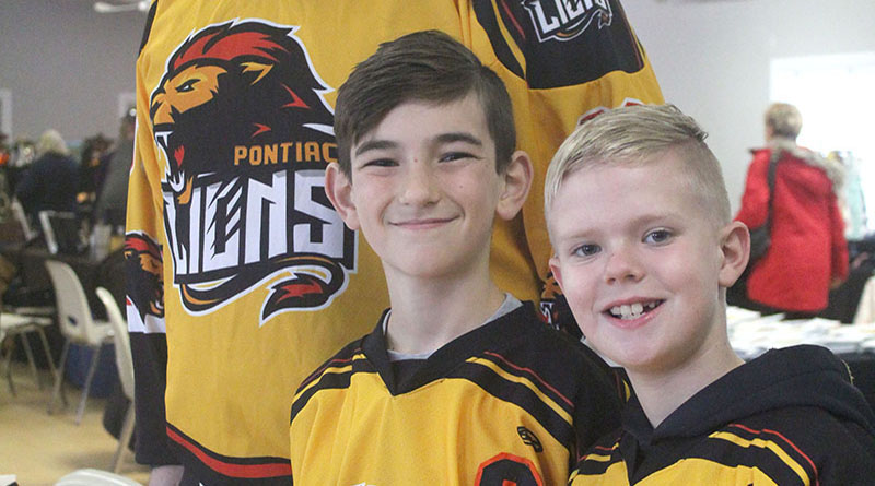 SDMHA vice-president Joshua Rebertz, along with two local minor hockey players Bentley Lalonde and Walker Tremblay accepted donations while selling socks and jerseys at their kiosk.
