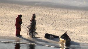 This year Lamothe was able to recover his tree after the floe floated downstream near the Bryson shoreline.