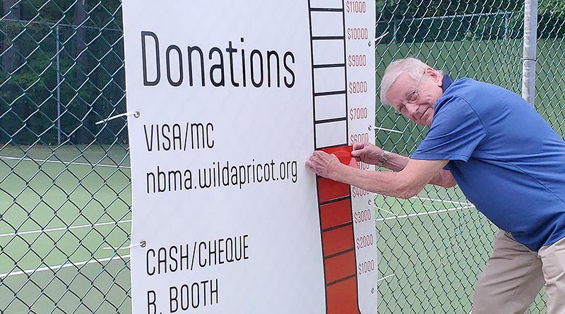 When Brian Booth arrived at the park next to the Centennial Hall in Norway Bay on Saturday afternoon, his first stop was to stick a strip of red adhesive vinyl onto the fundraising thermometer on the poster hanging on the tennis court fence.