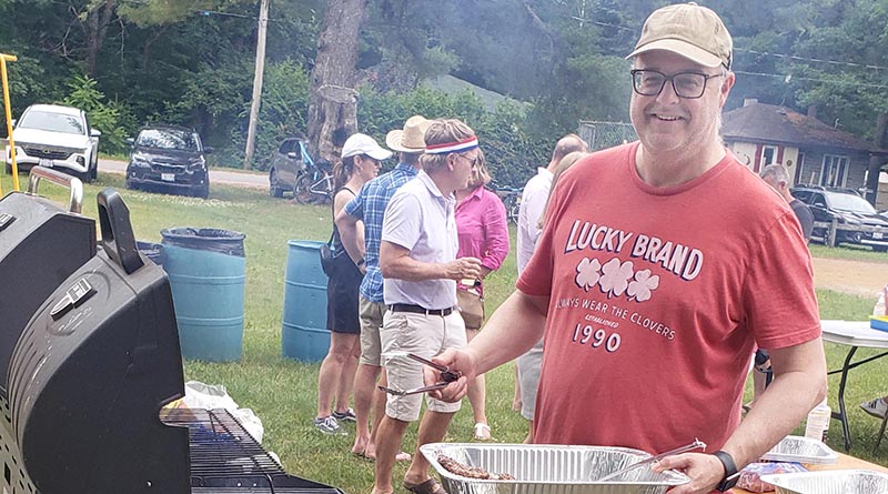 “Multiple volunteers from the Norway Bay community just showed up to help,” said Byrne, gesturing over his shoulder toward the small army of people behind him setting up tables and chairs, loading ice into the horse trough doubling as a beverage cooler, firing up the gas barbecues and laying out food.