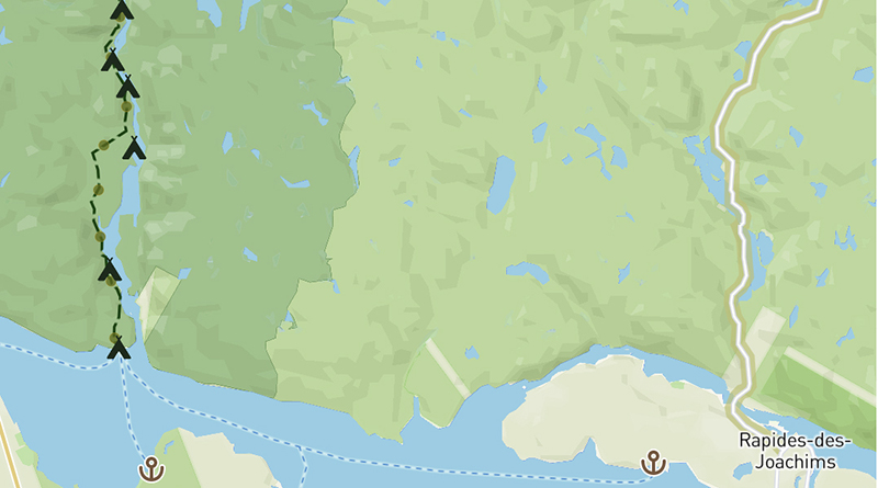 While the Tote Road is only open to walkers, too narrow to host four-wheelers, a car can bring you right to its trailhead. Following Chemin Dumoine north out of Rapides des Joachims will bring you to the northern end of the trail at Grand Chute, just after the road crosses the Dumoine River.