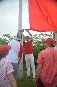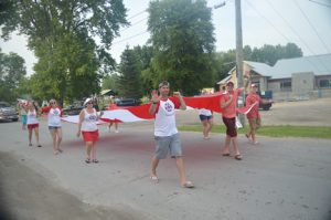 The committee worked together to parade their new flag, measuring 12 feet by 24 feet, all the way to the flag pole next to the ferry. There, Trudeau thanked everyone for their continued support, as well as his new group for their dedication in building another memorable year. Natasha Curley sang the national anthem, and the new flag was raised up.
