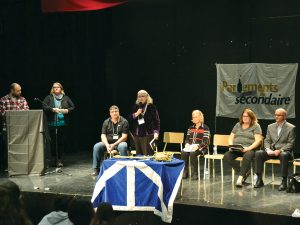 On Nov. 1, four of the five candidates for warden of MRC Pontiac along with Mansfield mayoral candidate Gilles Dionne gathered at École secondaire Sieur de Coulonge to speak with the future voters about issues affecting their community.