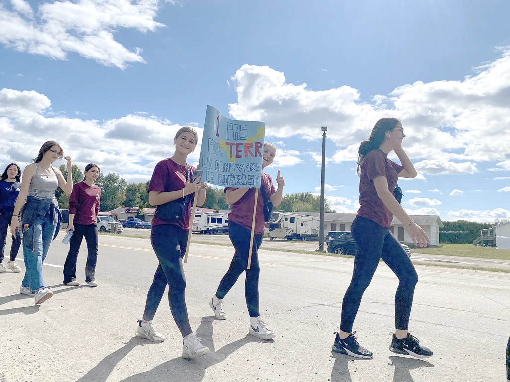 Over 200 of the school’s 350 students and 90 per cent of the school’s staff participated in the eight-kilometre walk that brought them, by way of the infamous red covered bridge, on a journey from the high school through both Mansfield and Fort Coulonge municipalities.