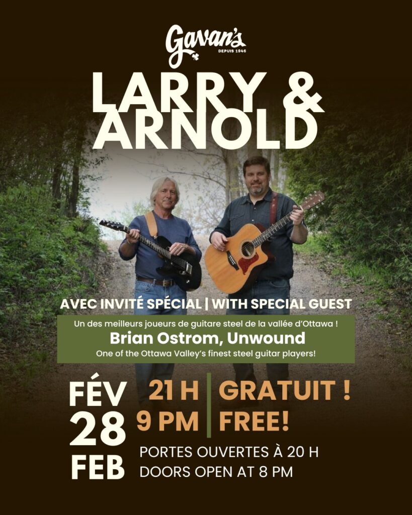 Larry brings 45 years of experience in the local music scene, Arnold has been lighting up the Ottawa & Pontiac circuit for 25 years with his Pontiac roots, and Brian Ostrom — an Ottawa Valley Hall of Famer and one of the region’s finest steel guitar players — adds his legendary sound.
