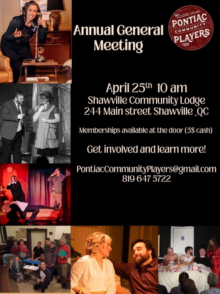 Get involved – learn what we’ve been doing and help us decide where we’ll go next! Attending the AGM is a great way to start your adventure in community theatre. Memberships are $5 and can be purchased at the door (cash only).