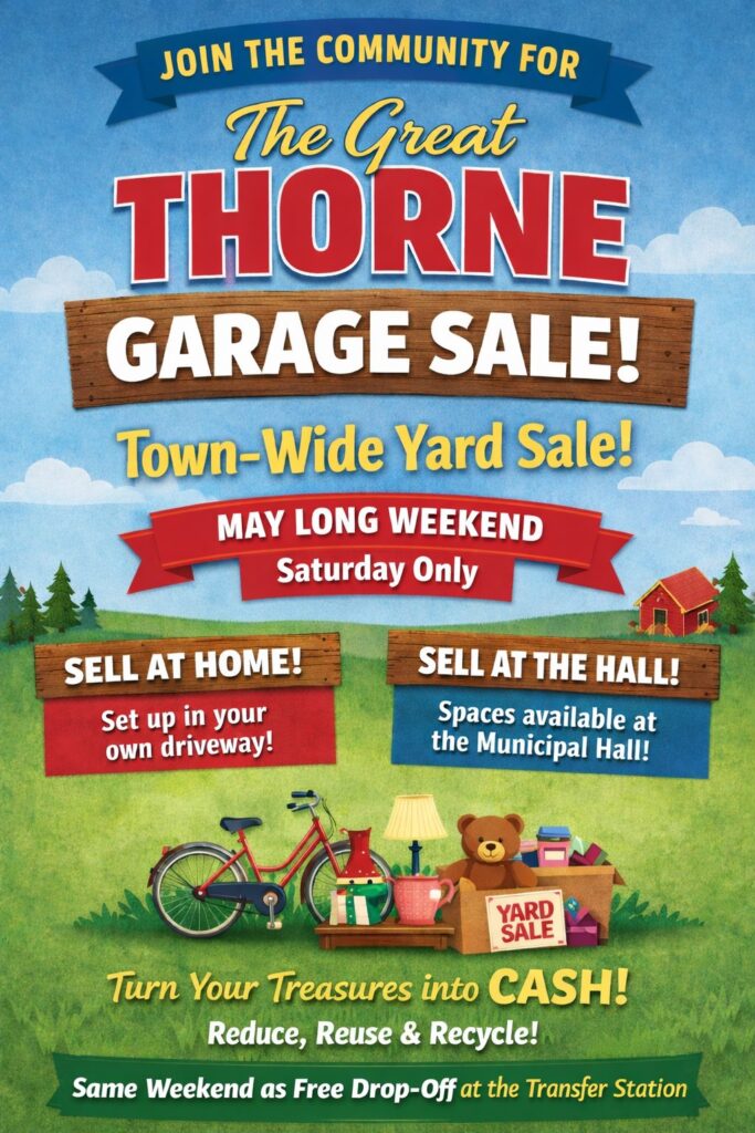 Join us for a town-wide garage sale happening the May Long Weekend – Saturday Only!
