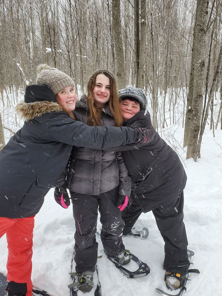 Pictured, Kathleen Kelly, Norah Park and Makenna Soulière enjoy themselves while showshoeing.