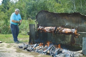 Food definitely appeared a big attraction, as there was a lot of it. With the day’s activities scheduled around communal meals, the church wasn’t afraid to go big. Saturday morning, at 4 a.m. a fire was started, and three hours later, two pigs were pitched over top on a spit. By noon, when this reporter watched the cooks remove the pigs from the flames, the pork was cooked to a juicy perfection.