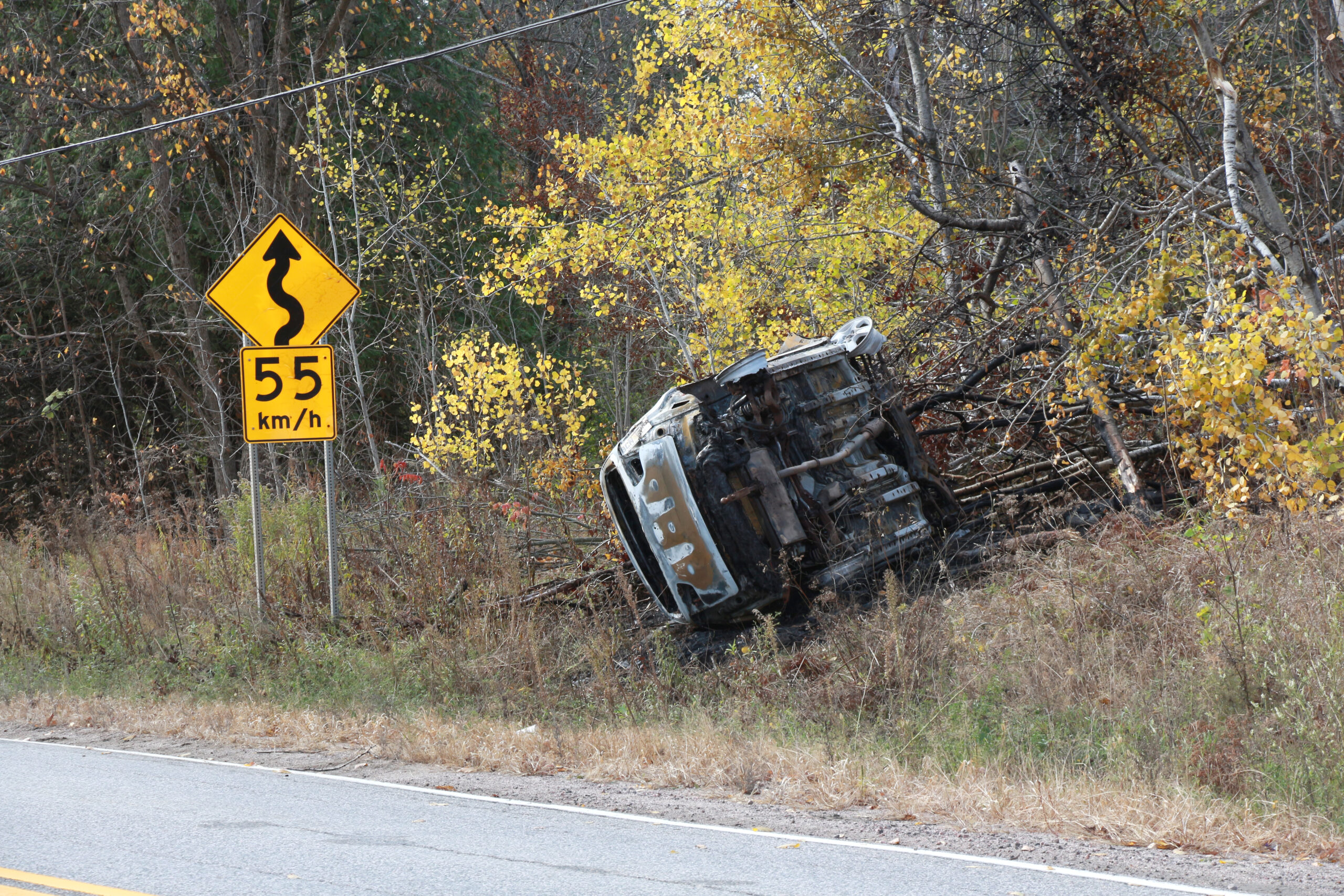 A vehicle was left scalded on the side of Rte. 301 after flames had been extinguished and its sole occupant sent to hospital with life-threatening injuries. Photo: K.C. Jordan