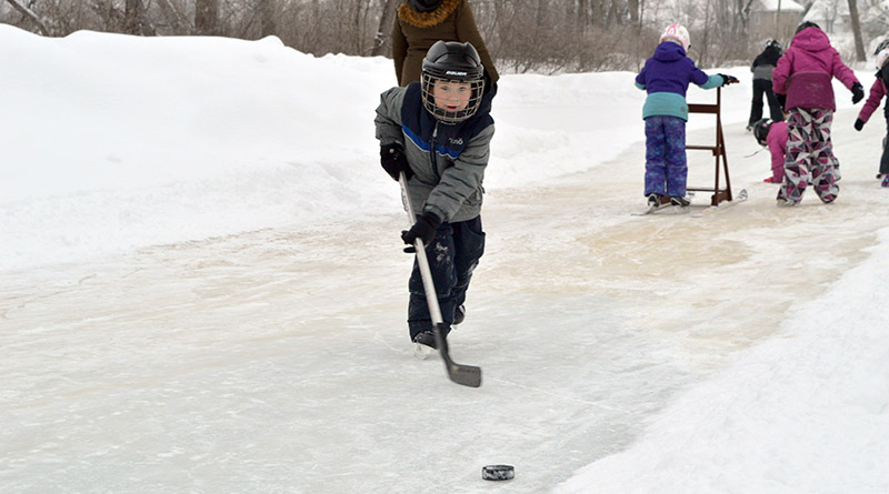 Meanwhile, others were plenty excited to get some hockey lessons in, spending their time practicing passes and shooting while the river was cleared of snow.