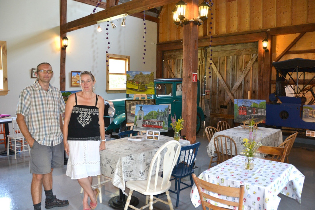 Down the line, just outside Quyon was the Domaine du Pontiac Village Winery and Automobile Museum, owned by Pavel Kohl and Maude-Emmanuelle Lambert. Though the garden aspect of their location was limited to the vines, inside the winery was a selection of streetcar paintings by local artist Phuong Pham.
