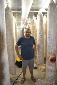 In the main building Fortin stores some of his pasteurizing equipment as well as a sterile chamber, where he introduces the mycelium (the fungal colony out of which the mushrooms grow) to a nutrient mixture. Fortin said he’s experimented with the mixture, but uses a combination of wheat grain with sawdust and water. He explained that the sawdust is used as a sort of filler, since the grain is expensive.