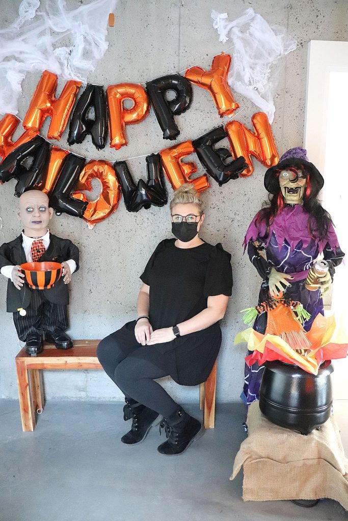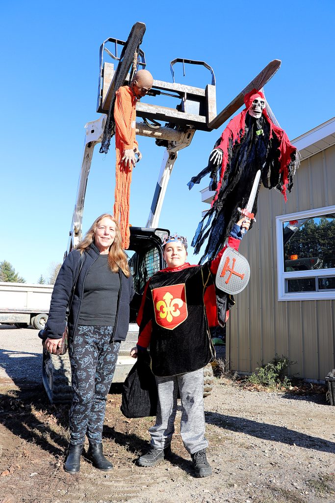 Just a little ways outside of town, trick-or-treaters arrived at Lalonde’s Towing to get a treat bag and take part in a pumpkin carving contest and costume contest, which were both judged online through Facebook. The building was decked out in Halloween decorations, and even featured a skeleton lift driver in Lalonde’s Towing uniform.