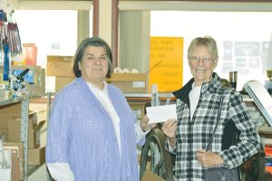 Val Henderson, right, of Henderson’s Grocery Store presents a $500 cheque in support of the Snowsuit Fund to Carole Valin, the liason between the group in Shawville and area. Henderson raised the money throughout the year in various means through her Norway Bay store. Valin was also presented with a $200 cheque from the Shawville Lionettes in support of the cause.