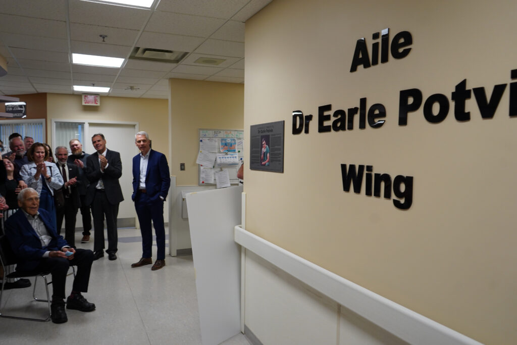 Prior to the wall unveiling, the CEO of regional health authority CISSSO, Dr. Marc Bilodeau, thanked Dr. Potvin for his service, calling him a “surgeon of great skill and humanity.”