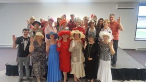 Bonnie Beveridge, president of the Norway Bay Historical Society and the ringleader behind the viewing party, greeted me and gave me the itinerary. Nearly everyone in the room was dressed up and wearing their fancy hats, which I learned are called fascinators.