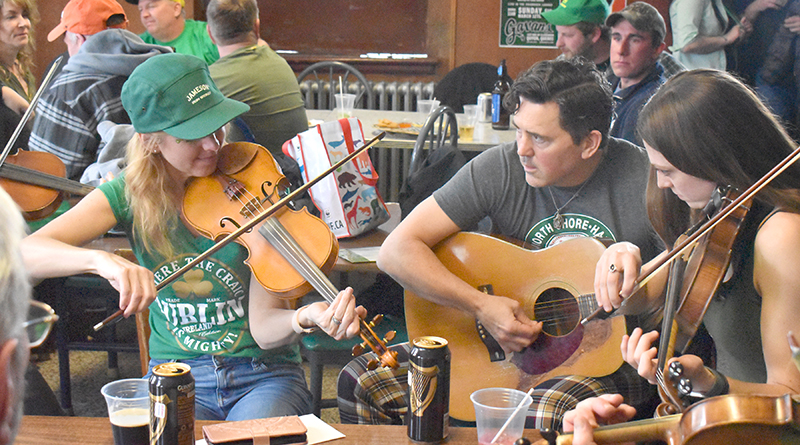 Virginia Schwartz, a local fiddler who has been coming to Gavan’s St Patrick’s Day party for years, performing in the Shamrock Lounge. “I’ve been coming here for, many years, since I was about six years old. And honestly, it’s really nice to be back and playing music with everybody here, especially after covid,” she said about being back.