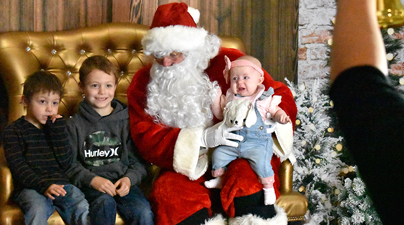 Harrison,Prestyn and Scarlett Beauregard taking a picture with Santa