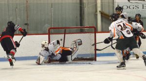 Maniwaki kept up a strong defence during the Hawks’ power play, not letting anything in, but lost their focus after this. The Hawks soon tied the scoreboard up, when one of theirs caught a deflected shot at the Maniwaki goalie and proved too fast for his reflexes.
