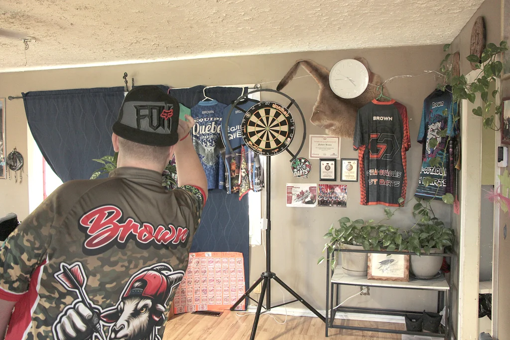 Brown started playing darts just two and a half years ago by watching his mom Melissa and older brother Roger, both of whom are experienced players themselves, play in their living room.