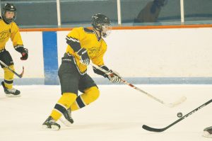 Hayes explained that his Bantam B team is comprised of four Peewee-aged players, including the goalie and three forwards. Despite this, the team is still putting in a great effort and sits about halfway in the standings.