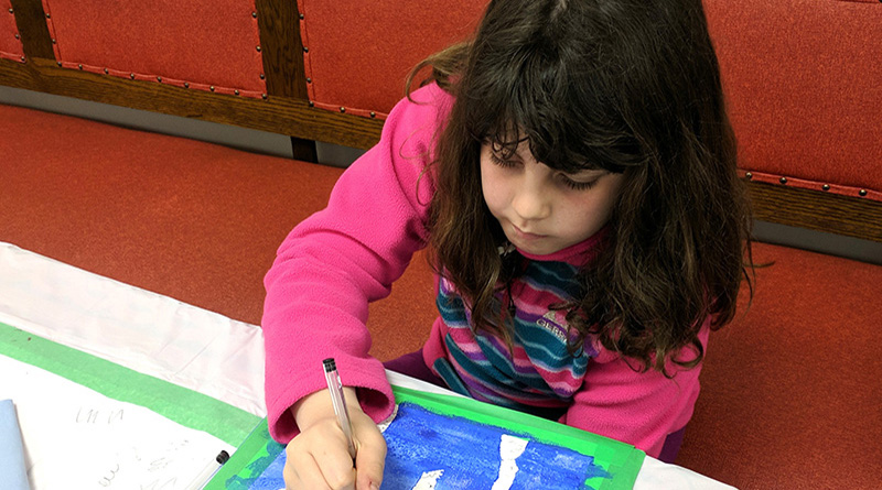 Local children create watercolours