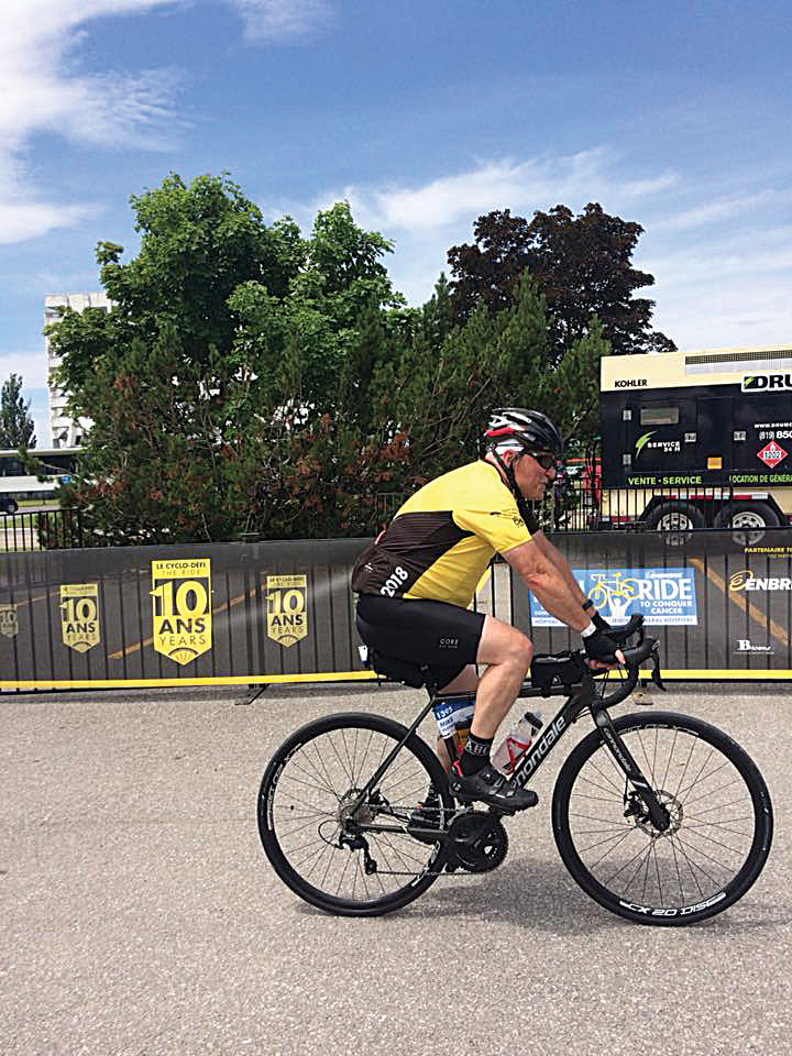 “Some of them were in teams. I was more of an individual,” he said, explaining that they travelled 106 km the first day, from the outskirts of Montreal to Three Rivers. The next day consisted of 124 km of pedaling to the edge of Quebec City.