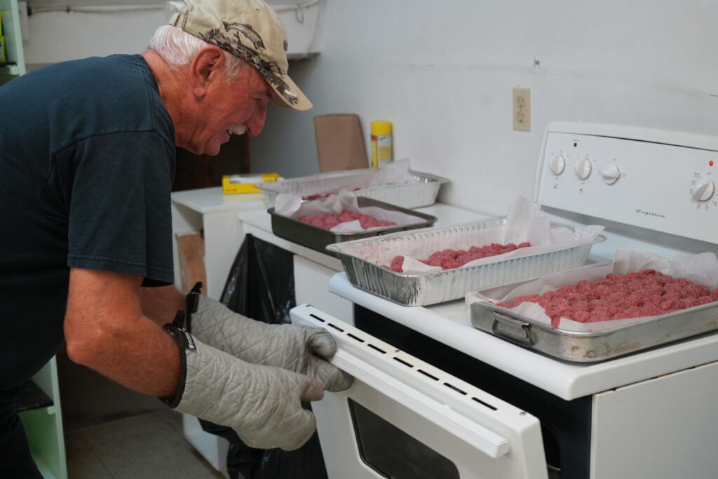 Helpers came in the afternoon to mix the ground beef, toasted breadcrumbs and a secret mix of spices volunteers will take with them to the grave. In the evening, they rolled and shaped that mixture into balls and plopped them in the oven.