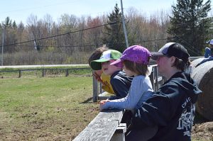 The new location is hoped to be more accessible to Otter Lake cottagers, and allow the owner to host her own competitions. From left: Ethan Thomas, Owen Thomas and Emma Thomas check out the horses at GELAM, with a little boost from their mom, Laura Palmer.