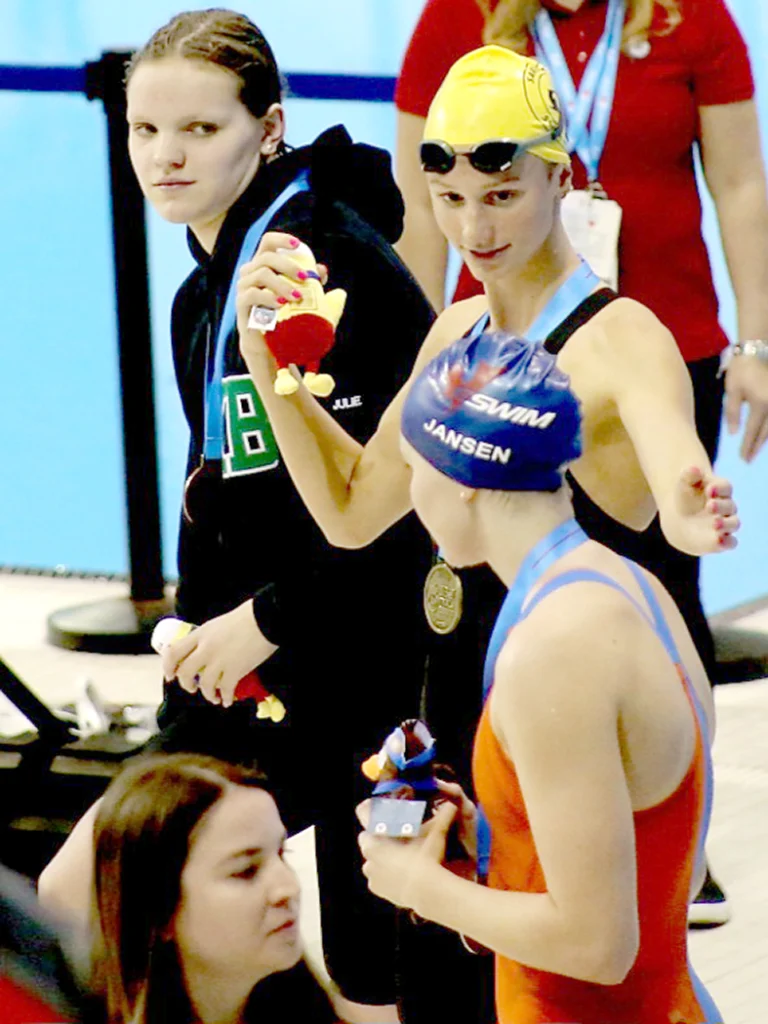 With a typical look of resolute determination on her face, Julie hopped in the pool, hoping to make up the gap and bring a medal to her country.