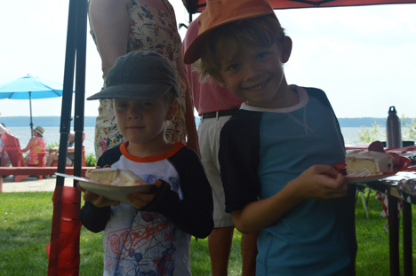 The eighth annual Strawberry Social took place in Norway Bay on Sunday, with plenty of cake, ice cream and, of course, strawberries, to get everyone together and kick off their season. From left: Felix and Arthur Blanchard show off their heaping plates of dessert.