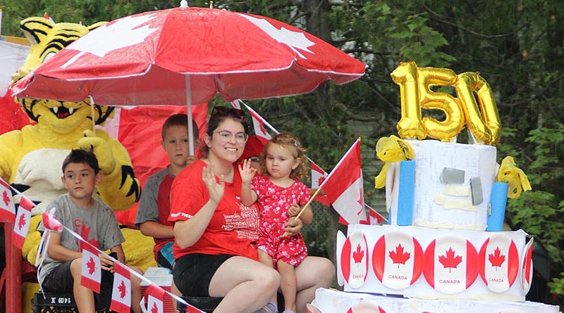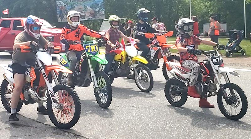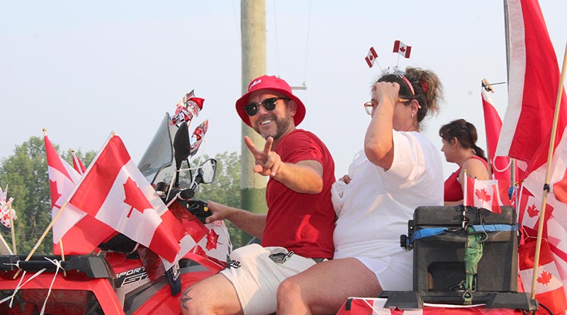 Following the band, a section of all-terrain and off-road-vehicles sporting Canadian flags large and small made it way down the road. Drivers and those accompanying them smiled, waved and threw candy, freezies and other treats to the appreciative crowd.